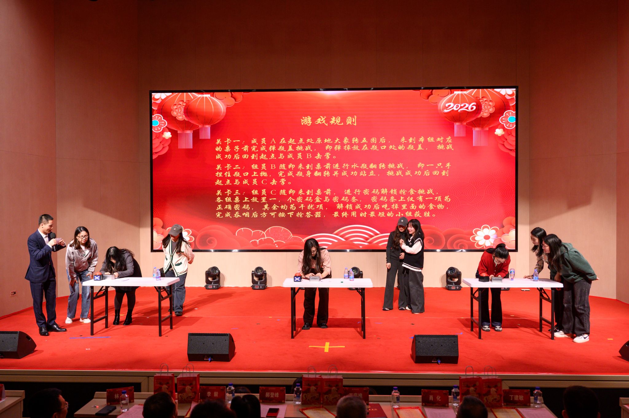 除了精彩的节目表演,晚会还设置了抽奖和游戏环节,将现场氛围推向了高潮。欢呼声与笑声此起彼伏,大家在轻松愉悦的氛围中暂时忘记了工作的忙碌,彼此的距离也在互动中悄然拉近。这一幕幕充满温情的画面,成为了晚会上最生动、最温暖的篇章。