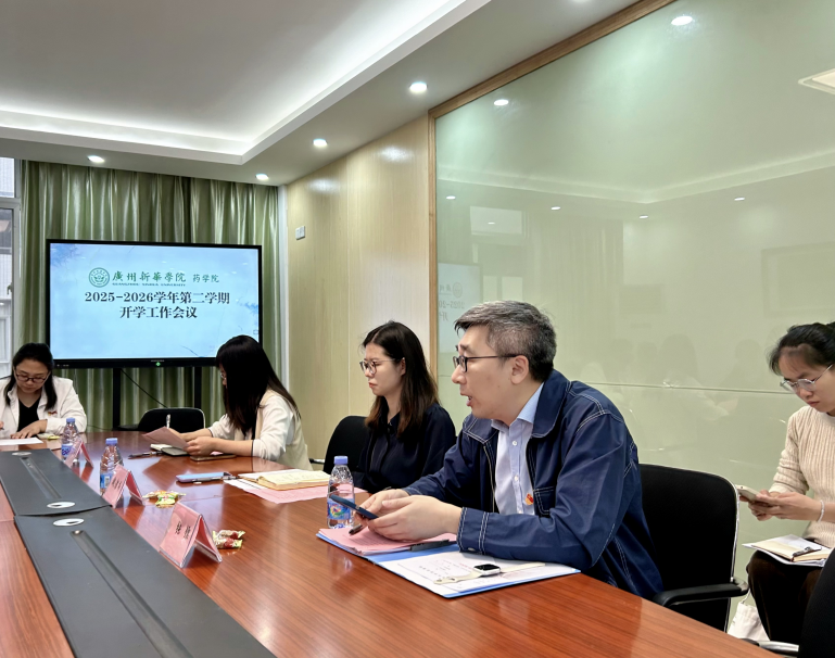 为深入传承践行学校“四个一”优良教学传统,全面落实学校期初教学检查工作要求,统筹部署新学期各项教学工作,保障本科教学秩序平稳规范运行,2026年2月28日上午,药学院在广州校区第七会议室(教学楼B117会议室)召开2025学年第二学期开学初教学工作会议。会议由药学院党总支书记魏洁书主持,张镖副院长、庄添副书记及学院全体教职工参会,为新学期教学工作开好局、起好步筑牢基础。