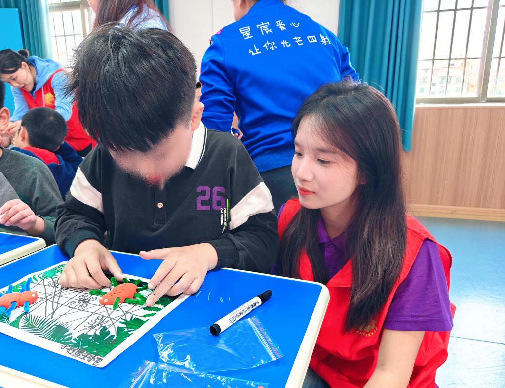 活动现场,志愿者们化身“星光守护者”。围绕自闭症儿童发展需求,精心设计并同步开展七大主题康复小活动,分别为:感官刺激活动、互动游戏、艺术创作、运动与体能活动、语言交流、日常生活技能、情绪管理,以“全人支持、多维干预”的理念,为“星星的孩子”搭建一座通往世界的七彩桥梁。