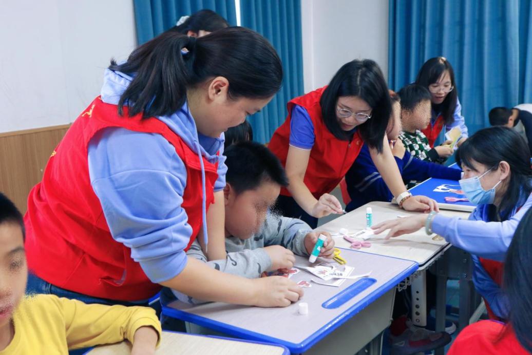 庄添:当我第一次走进特殊教育儿童的教室,第一次真正地与那些被贴着“自闭症”标签的孩子面对面互动交流,我才知道陪伴他们成长的家长和老师是多么的不容易,是他们给予无条件的包容、耐心、爱心、温暖与支持,真正照亮了这些特别的孩子未来人生的路。我看着这些孩子为了学会一个系鞋带的生活常识,而不厌其烦地一次一次尝试无数次的练习,我为他们点赞,他们让我们学会了真正的坚韧与坚持,真正的沟通不在于言语的多少,而在于心灵的倾听与理解。参加这次志愿服务活动,它赋予的意义不仅是一次心灵的洗礼,更是一次对爱与生命的尊重。