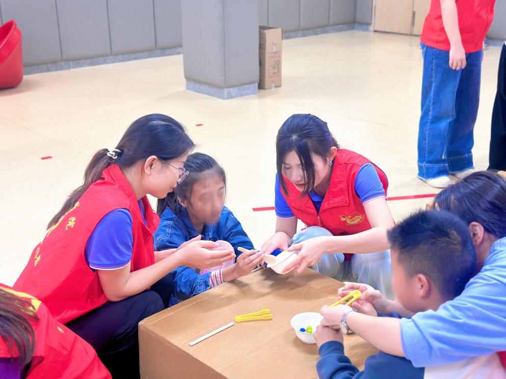 朱洁怡:前往机构的路上,我满心期待着与这群孩子见面。和他们一同触摸沙子的细腻、感受水流的灵动、观察光影的变幻,我清晰捕捉到他们眼中对世界的好奇。教他们用粘土创作蜘蛛画时,更真切体会到每个孩子独有的想法与创造力。机构老师们对孩子满溢的关爱与耐心,像暖光般包裹着这个特殊群体,让我心生敬佩。这段独特的经历,让我懂得陪伴与引导的意义,也成为了我心中温暖而坚定的力量。
