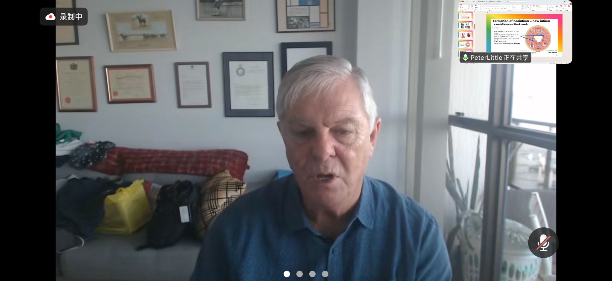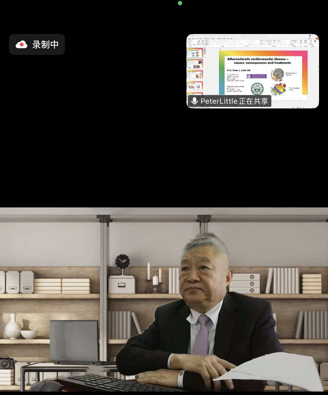 11月17日,广州新华学院特邀澳大利亚昆士兰大学教授Peter James Little AM (下文简称“Peter教授”)开展“动脉粥样硬化的药理学研究进展”线上线下讲座。校长王庭槐、药学院党总支书记、副院长魏洁书、党总支副书记庄添出席参加,药学院副院长曹颖男主持讲座。
