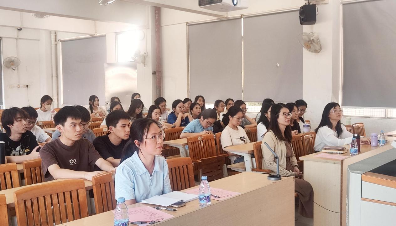 在提问环节,2023级药学的朱永坤同学和许淑玲同学与Peter教授交流互动,提问内容包括“动脉粥样硬化主要影响哪类血管?”“对于患有糖尿病的动脉粥样硬化患者,新型药物方案与标准治疗相比,在长期安全性和预后方面表现如何?”Peter教授逐一细致解答。