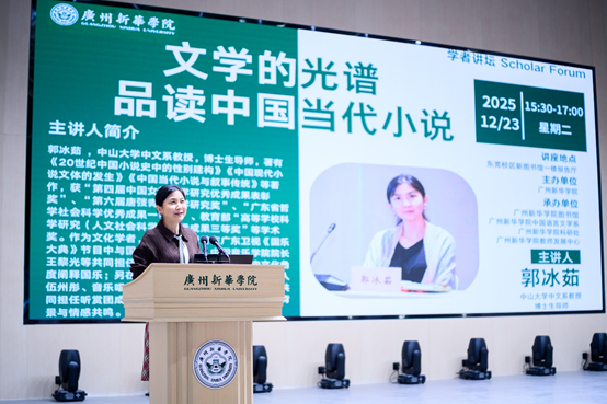 作为计划的首场活动,“文学的光谱——品读中国当代小说”学者讲坛由中山大学中文系郭冰茹教授主讲,此次讲坛特邀东莞市古梅一中100名同学和新华学子共同参与,共享这场文学盛宴。