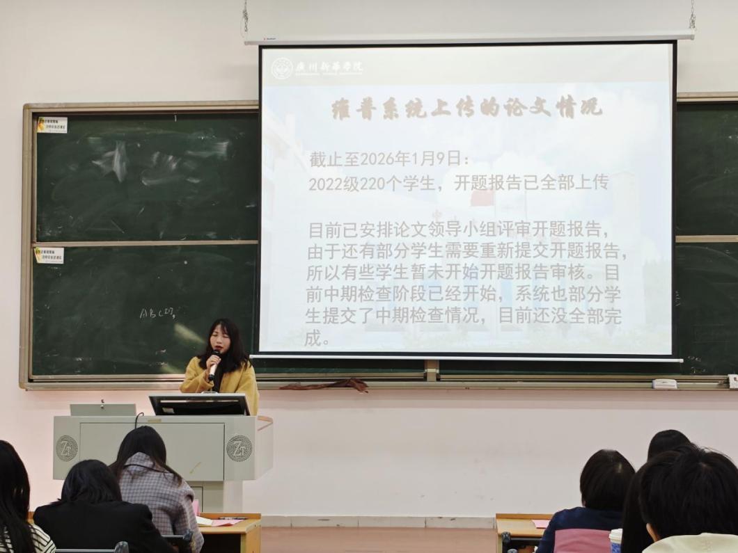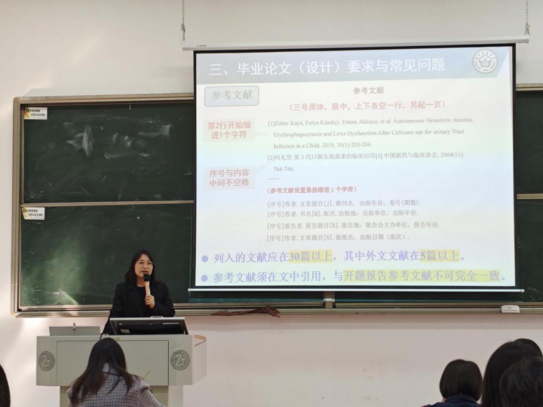 王有娣老师系统讲解了毕业论文的整体安排与具体要求,涵盖时间节点、写作流程、结构规范、格式细节及装订标准等内容,帮助指导教师和学生全面把握毕业论文工作的全貌。她重点强调了论文撰写中的关键环节——包括选题聚焦、文献综述深度、方法科学性、结果分析逻辑性等,并提醒学生避免常见格式错误,确保论文内容充实、结构严谨、逻辑清晰、格式规范。通过此次说明,师生进一步明确了各阶段的目标与任务,为高质量、有序完成毕业论文奠定了坚实基础。