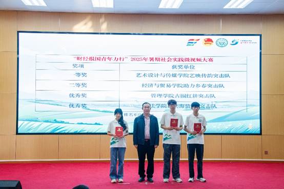 李毅副校长宣读表彰决定,对在2025年暑期“三下乡”社会实践活动中表现突出的先进集体与优秀个人给予表彰奖励。他充分肯定本次活动取得的扎实成效,指出实践成果获得了地方政府和基层单位的广泛好评,并收到多封感谢信及多篇高质量论文成果,展现了广州新华学子服务社会的责任担当与扎实学风。他鼓励受表彰师生再接再厉,继续发挥示范作用,为今后社会实践活动树立榜样,力争取得更大成绩。