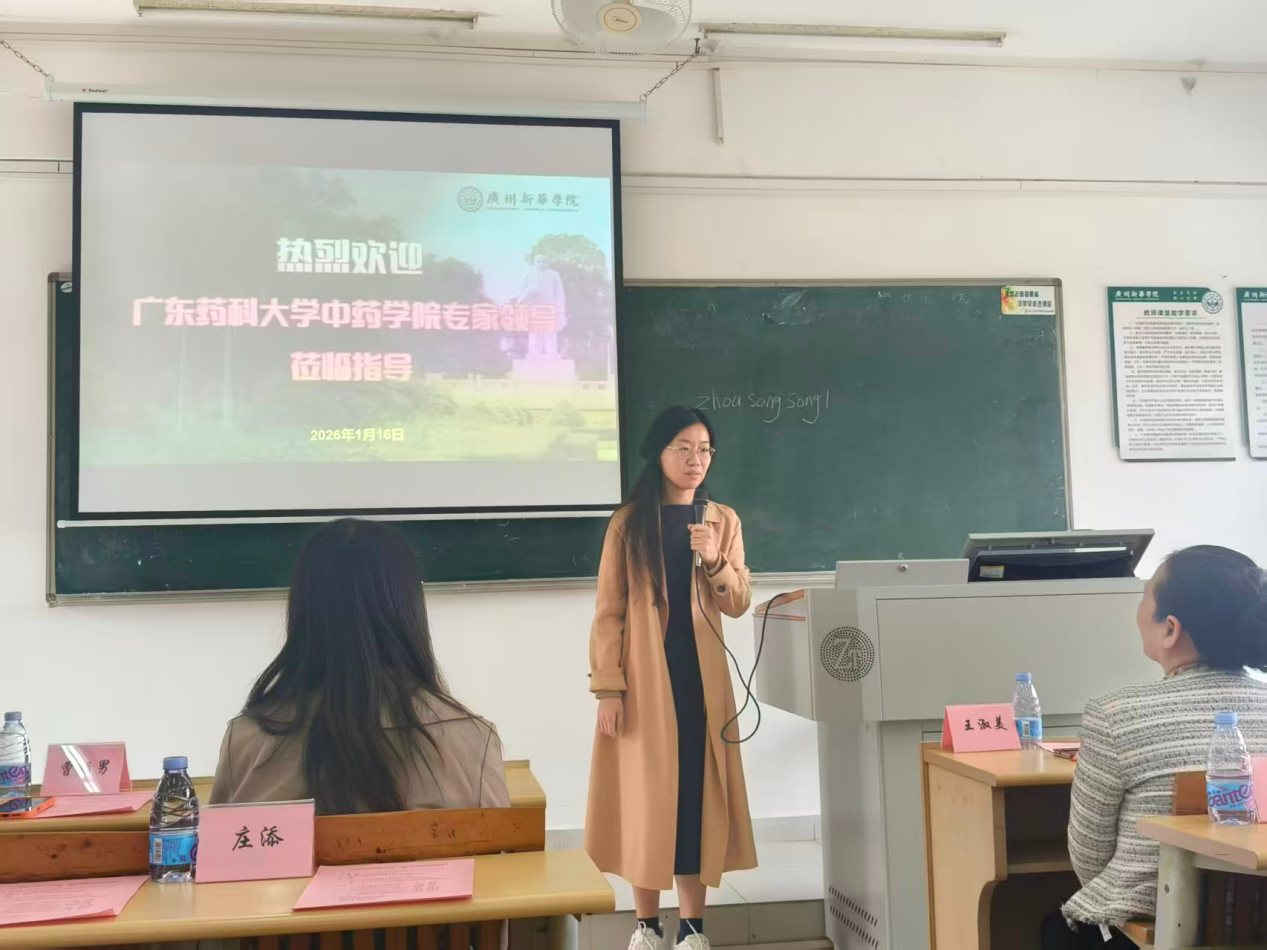 1月16日上午,为助力我院学子尽早明晰考研专业方向、规划学术路径,广州新华学院药学院邀请广东药科大学中药学院到校开展研究生专业介绍会。本次活动特邀广东药科大学中药学院各学科方向代表,为学子们进行研究生报考的专业介绍及考研调剂咨询。广东药科大学中药学院由副院长王淑美教授、副院长郑希龙副教授带队,谢媛媛教授、王长福教授、龚梦鹃教授、马江副教授、周海松老师等代表一同参会。学院党总支书记、副院长魏洁书担任主持人,药学院副院长曹颖男、副院长张镖、党总支副书记庄添、徐娟娟教授、王丽丽教授、罗爱勤教授以及药学专业2022级、2023级、2024级学生代表共同参与了此次介绍会。